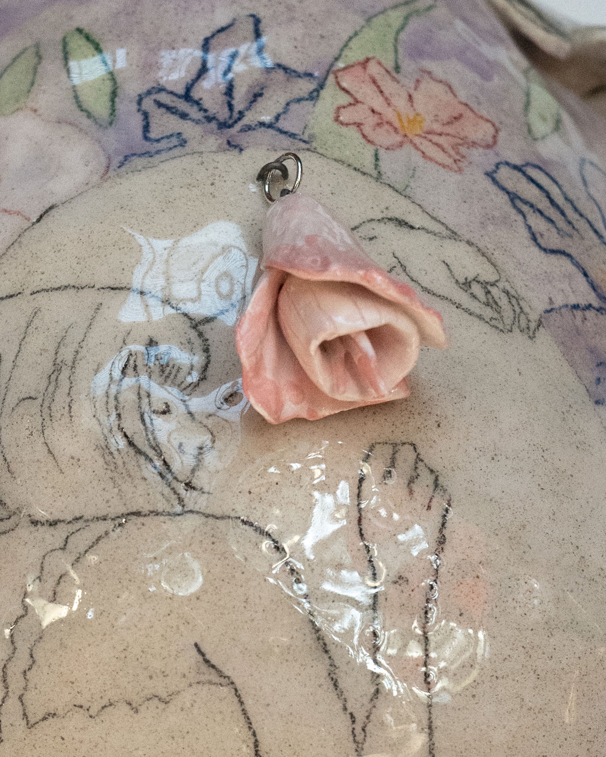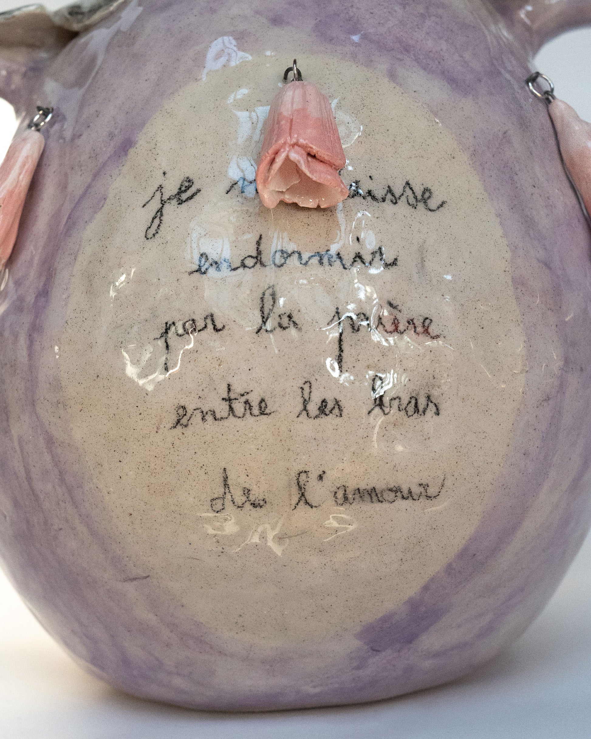 Pièce unique faïence émaillée – peinture à la main – écriture manuscrite "je me laisse endormir par la prière entre les bras de l'amour".
